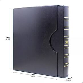 CARACTERÍSTICAS: Material: Sintético Cor: Preto Contem: Álbum + Case Capa Protetora Dimensão Externa Case: 31x26x6,5cm Dimensão do Álbum: 30x25,5x5,5cm Qtd argolas: 4 furação universal Espaço entre argolas: 7,5cm