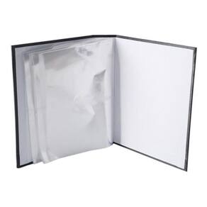 Parte externa: folhas plásticas com repartições para as fotos