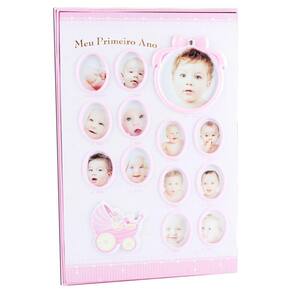 Álbum Fotografico Bebê primeiro aninho 180 fotos 10 x 15 cm com campos para principais anotações do seu bebêPossui 12 janelinhas pequenas e 1 maior na capa.Histórico e 6 páginas autocolantes.Tamanho do Álbum 34 cm x 24 cm x 5 cm Marca: Buenos Imports