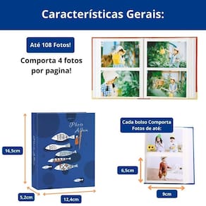 - 50 páginas - comporta até 200 fotos com tamanho 6,5x9cm