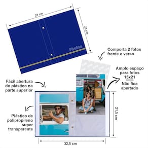 Álbum de fotos para guardar e proteger suas recordações. Os albuns de fotos variados possuiem capas impressos em couche e acabamento brilho . Produto de qualidade e durabilidade, fabricada com os melhores materias do mercado. Tem capacidade para até 40 fotos 15x21 2 fotos por pagina Plastico de polipropileno transparente que protege as fotos. Nunca use pvc