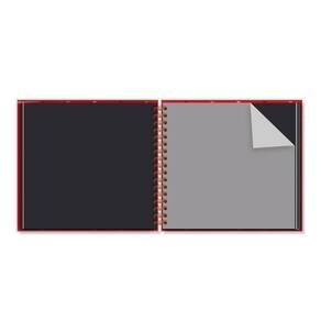 Capa dura, miolo com 30 folhas pretas 180 g/m2 encorpadas , folhas protetoras intercaladas, formato 21,8 cm 23,5 cm, encadernação em wire-o. Acompanha capa protetora transparente. Embalagem em caixa de papel kraft e tampa em acetato transparente. Medidas: 30cm x 27cm x 3cm, fechamento com tag adesiva com mensagem.
