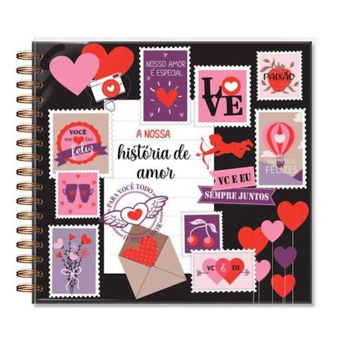 Album de fotos G Romantico Selos Fina Ideia Capa dura, miolo com 30 folhas pretas 180 g/m2 encorpadas , folhas protetoras intercaladas, formato 21,8 cm 23,5 cm, encadernação em wire-o. Acompanha capa protetora transparente. Embalagem em caixa de papel kraft e tampa em acetato transparente. Medidas: 30cm x 27cm x 3cm, fechamento com tag adesiva com mensagem. Marca: Não Informado