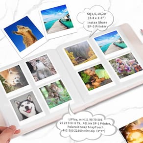 Ótima proteção para suas fotos favoritas Tem uma pilha de fotos tiradas por câmeras mini ou quadradas espalhadas e não encontra nenhum lugar para guardá-las? Este álbum de fotos fornecerá proteção abrangente às suas fotos contra poeira, bebidas, amassados e arranhões. Álbum de fotos de visualização completa de 256 bolsos para câmera instantânea mini e quadrada. 1. Compatível com fotos tiradas pela câmera de filme instantâneo mini LiPlay 11 9 8 7s 40 90 70 50S 26 25, cujo tamanho de filme é 2* 3". 2. Compatível com fotos tiradas pela câmera de filme instantâneo quadrada sq1, sq6, sq10, sq20, cujo tamanho de filme é 2* 3". é 3,4 x 2,8". 3. Adequado para a impressora de smartphone fujifilm instax mini Link/Share SP-1. 4. Adequada para filmes de câmeras de impressão instantânea Snap/Snap Touch/PIC-300/Z2300 e impressoras fotográficas Mint e Zip, impressora fotográfica de bolso Hi-Print de 2x3". 5. Adequada para papel fotográfico da impressora Sprocket. 6. Adequada para cartões de crédito, cartões de visita e fotos cujo tamanho é 2x3 polegadas.