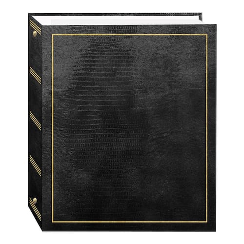 Álbum magnético de fotos, 100 páginas, de couro sintético, capa com estampa dourada, com 3 argolas, da Pioneer Photo Albums - As páginas magnéticas Fast-Stick apresentam uma sobreposição de plástico transparente que se autoadere à página, segurando fotos com segurança - Inicialmente contém 100 páginas (50 folhas), mais encadernação de 3 anéis aceita recargas (número do modelo: RLM) - As páginas de 21 x 27 cm contêm muitos tamanhos de fotos, incluindo carteira de 6,3 x 8,9 cm, 10 x 15 cm, 12,7 x 17,8 cm, 15 x 20 cm e mais - Capa de couro sintético com estampa dourada - Seguro para fotos: livre de emissão de ácido e PVC