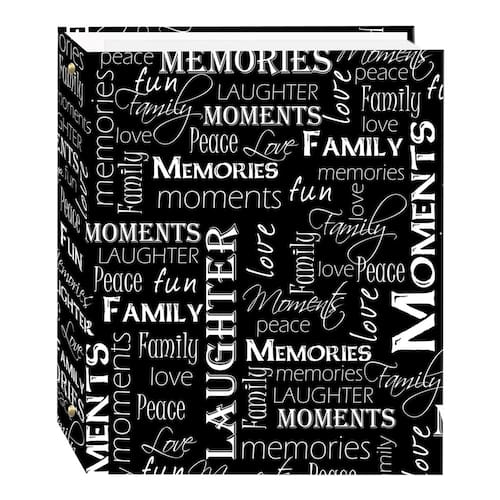 Álbum magnético de fotos, 100 páginas, de couro sintético, capa com estampa dourada, com 3 argolas, da Pioneer Photo Albums - As páginas magnéticas Fast-Stick apresentam uma sobreposição de plástico transparente que se autoadere à página, segurando fotos com segurança - Inicialmente contém 100 páginas (50 folhas), mais encadernação de 3 anéis aceita recargas (número do modelo: RLM) - As páginas de 21 x 27 cm contêm muitos tamanhos de fotos, incluindo carteira de 6,3 x 8,9 cm, 10 x 15 cm, 12,7 x 17,8 cm, 15 x 20 cm e mais - Capa de designer - Seguro para fotos: livre de emissão de ácido e PVC