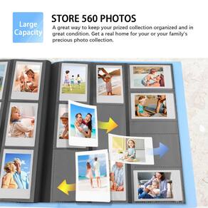 Álbum de fotos de 560 bolsos para mini câmera Fujifilm Instax, álbum de fotos 2x3 para câmera instantânea Fujifilm Instax Mini 11 12 9 Evo 90 70 40 8 7 LiPlay, azul