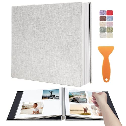 - [Páginas magnéticas autoadesivas para fácil uso]: sem necessidade de cola ou fita - basta destacar e colar suas fotos, mantém imagens padrão de 10 x 15 cm, 12 x 17 e 20 x 25 cm com segurança no lugar, inclui raspador de plástico para colocação sem bolhas