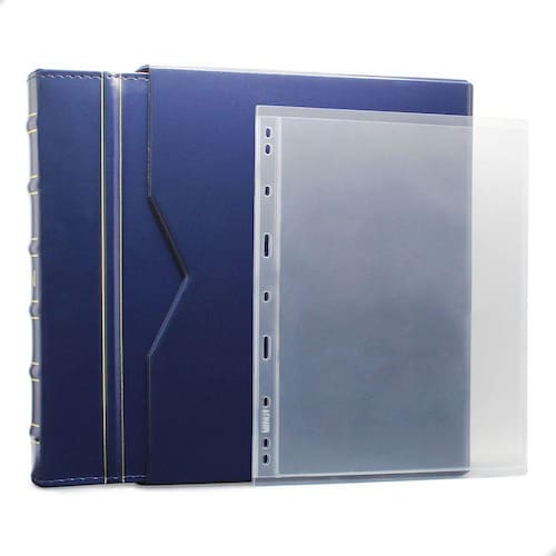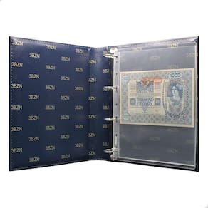 O Álbum de Luxo Azul 10 Folhas para 10 Cédulas 3BZN P é um kit de fichário que acompanha folhas para cédulas em acetato tamanho 28x21cm, a transparência da folha é alta e cristalina, de forma que é possível ver sua cédula sem interferências, e de ambos os lados: frente e verso, dessa forma é possível apreciar sua coleção da melhor forma. Esse kit de folhas é feito em um material resistente sendo o principal organizador de cédulas colecionáveis para colecionador.