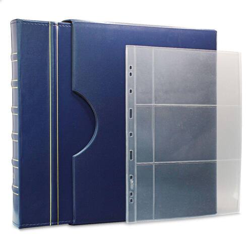 O Álbum de Luxo Azul 30 Folhas para 90 Cédulas 3BZN G é um kit de fichário que acompanha folhas para cédulas em acetato tamanho 32x24cm, a transparência da folha é alta e cristalina, de forma que é possível ver sua cédula sem interferências, e de ambos os lados: frente e verso, dessa forma é possível apreciar sua coleção da melhor forma. Esse kit de folhas é feito em um material resistente sendo o principal organizador de cédulas colecionáveis para colecionador.