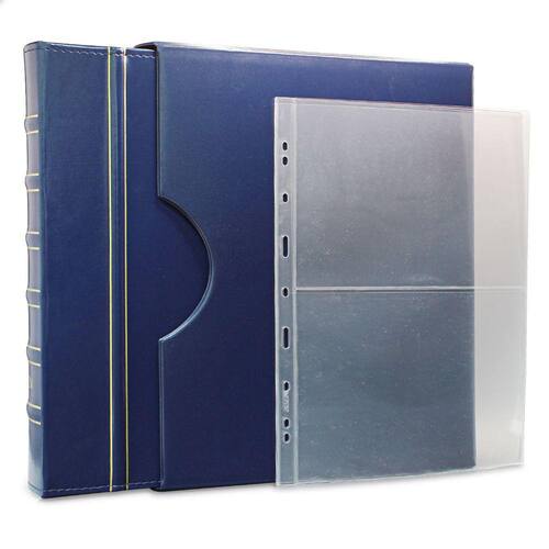 O Álbum de Luxo Azul 30 Folhas para 60 Cédulas 3BZN G é um kit de fichário que acompanha folhas para cédulas em acetato tamanho 32x24cm, a transparência da folha é alta e cristalina, de forma que é possível ver sua cédula sem interferências, e de ambos os lados: frente e verso, dessa forma é possível apreciar sua coleção da melhor forma. Esse kit de folhas é feito em um material resistente sendo o principal organizador de cédulas colecionáveis para colecionador.