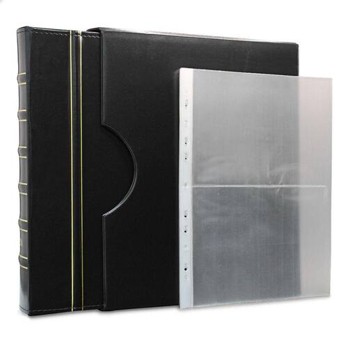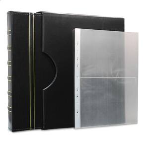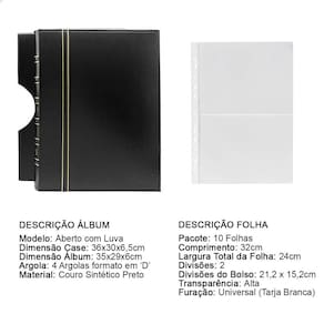 O Álbum de Luxo Preto 10 Folhas PP para 20 Cédulas 3BZN G é um kit de fichário que acompanha Folhas PP. Seu acabamento é transparente, podendo visualizar as cédulas frente e verso. Essa folha é ideal para você criar aquele mostruário que sempre desejou com sua coleção de cédulas antigas, nacionais ou estrangeras e finalmente poder mostrar sua coleção toda organizada para sua família e amigos.