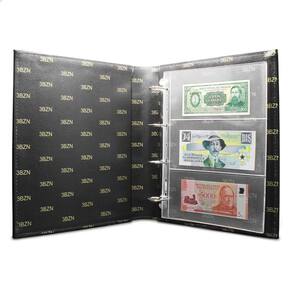 O Álbum de Luxo Preto 10 Folhas para 60 Cédulas 3BZN G é um kit de fichário que acompanha folhas para cédulas em acetato tamanho 32x24cm, a transparência da folha é alta e cristalina, de forma que é possível ver sua cédula sem interferências, e de ambos os lados: frente e verso, dessa forma é possível apreciar sua coleção da melhor forma. Esse kit de folhas é feito em um material resistente sendo o principal organizador de cédulas colecionáveis para colecionador.