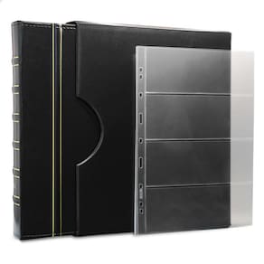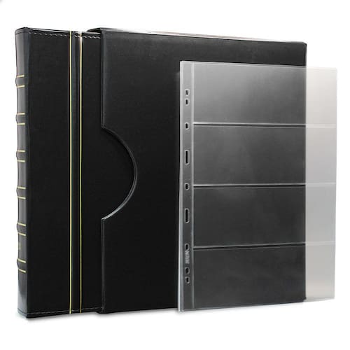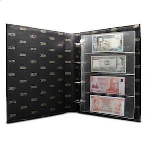 O Álbum de Luxo Preto 30 Folhas para 120 Cédulas 3BZN G é um kit de fichário que acompanha folhas para cédulas em acetato tamanho 32x24cm, a transparência da folha é alta e cristalina, de forma que é possível ver sua cédula sem interferências, e de ambos os lados: frente e verso, dessa forma é possível apreciar sua coleção da melhor forma. Esse kit de folhas é feito em um material resistente sendo o principal organizador de cédulas colecionáveis para colecionador.
