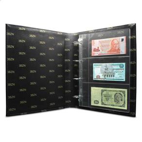 O Álbum de Luxo Preto 40 Folhas para 120 Cédulas 3BZN G é um kit de fichário que acompanha folhas para cédulas em acetato tamanho 32x24cm, a transparência da folha é alta e cristalina, de forma que é possível ver sua cédula sem interferências, e de ambos os lados: frente e verso, dessa forma é possível apreciar sua coleção da melhor forma. Esse kit de folhas é feito em um material resistente sendo o principal organizador de cédulas colecionáveis para colecionador.