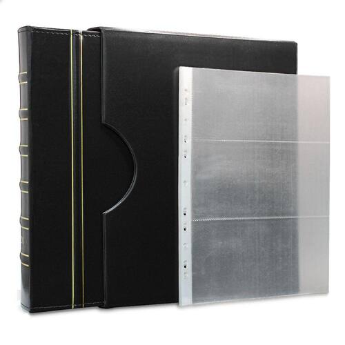 O Álbum de Luxo Preto 40 Folhas PP para 120 Cédulas 3BZN G é um kit de fichário que acompanha Folhas PP. Seu acabamento é transparente, podendo visualizar as cédulas frente e verso. Essa folha é ideal para você criar aquele mostruário que sempre desejou com sua coleção de cédulas antigas, nacionais ou estrangeras e finalmente poder mostrar sua coleção toda organizada para sua família e amigos.