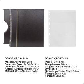 O Álbum Fichário Luxo Preto Gigante 30 Folhas para Cédulas 3 Espaços 28x21 , é um kit de fichário que acompanha folhas para cédulas em acetato tamanho 28x21cm, a transparência da folha é alta e cristalina, de forma que é possível ver sua cédula sem interferências, e de ambos os lados: frente e verso, dessa forma é possível apreciar sua coleção da melhor forma. Esse kit de folhas é feito em um material resistente sendo o principal organizador de cédulas colecionáveis para colecionador.