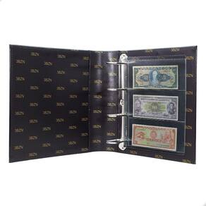 Álbum Fichário Luxo Preto Gigante 30 Folhas para Cédulas 3 Espaços 28x21