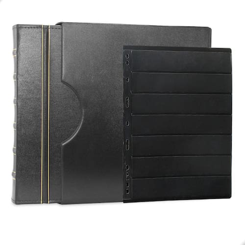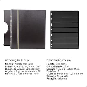 Álbum Fichário Luxo Preto Gigante 30 Folhas para Selos 7 Espaços 28x21
