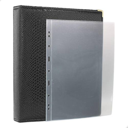 Álbum Fichário 10 Folhas para Cédulas 1 Espaço 32x24 Cobra GF, é um kit de fichário que acompanha folhas para cédulas em acetato tamanho 32x24cm, a transparência da folha é alta e cristalina, de forma que é possível ver sua cédula sem interferências, e de ambos os lados: frente e verso, dessa forma é possível apreciar sua coleção da melhor forma. Esse kit de folhas é feito em um material resistente sendo o principal organizador de cédulas colecionáveis para colecionador.