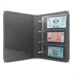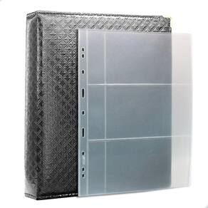 Álbum Fichário 10 Folhas para Cédulas 3 Espaços com Bolso 32x24 Cobra Fosco G, é um kit de fichário que acompanha folhas para cédulas em acetato tamanho 32x24cm, a transparência da folha é alta e cristalina, de forma que é possível ver sua cédula sem interferências, e de ambos os lados: frente e verso, dessa forma é possível apreciar sua coleção da melhor forma. Esse kit de folhas é feito em um material resistente sendo o principal organizador de cédulas colecionáveis para colecionador.
