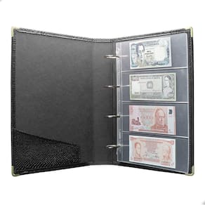 Álbum Fichário 10 Folhas para Cédulas 4 Espaços 32x24 Cobra G, é um kit de fichário que acompanha folhas para cédulas em acetato tamanho 32x24cm, a transparência da folha é alta e cristalina, de forma que é possível ver sua cédula sem interferências, e de ambos os lados: frente e verso, dessa forma é possível apreciar sua coleção da melhor forma. Esse kit de folhas é feito em um material resistente sendo o principal organizador de cédulas colecionáveis para colecionador.