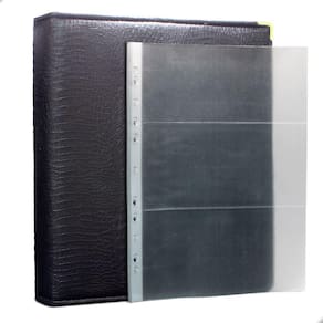 Álbum Fichário 10 Folhas PP para Cédulas 3 Espaços 32x24 Cobra Fosco GF, é um kit de fichário que acompanha Folhas PP. Seu acabamento é transparente, podendo visualizar as cédulas frente e verso. Essa folha é ideal para você criar aquele mostruário que sempre desejou com sua coleção de cédulas antigas, nacionais ou estrangeras e finalmente poder mostrar sua coleção toda organizada para sua família e amigos.
