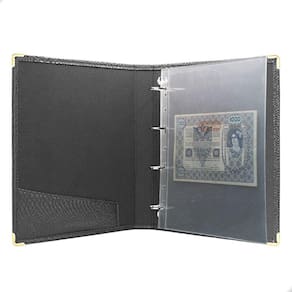 Álbum Fichário 20 Folhas para Cédulas 1 Espaço 32x24 Cobra GF, é um kit de fichário que acompanha folhas para cédulas em acetato tamanho 32x24cm, a transparência da folha é alta e cristalina, de forma que é possível ver sua cédula sem interferências, e de ambos os lados: frente e verso, dessa forma é possível apreciar sua coleção da melhor forma. Esse kit de folhas é feito em um material resistente sendo o principal organizador de cédulas colecionáveis para colecionador.