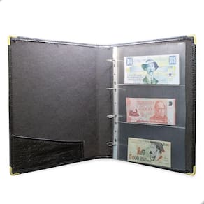 Álbum Fichário 20 Folhas PP para Cédulas 3 Espaços 32x24 Cobra Fosco GF, é um kit de fichário que acompanha Folhas PP. Seu acabamento é transparente, podendo visualizar as cédulas frente e verso. Essa folha é ideal para você criar aquele mostruário que sempre desejou com sua coleção de cédulas antigas, nacionais ou estrangeras e finalmente poder mostrar sua coleção toda organizada para sua família e amigos.