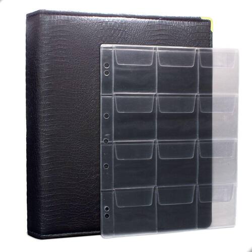 Álbum Fichário 30 Folhas para 360 Moedas 32x24 Cobra Fosco GF é um kit de fichário que acompanha folhas para Moedas tamanho 32x24cm, a transparência da folha é alta e cristalina, de forma que é possível ver sua moeda sem interferências, e de ambos os lados: frente e verso, dessa forma é possível apreciar sua coleção da melhor forma. Esse kit de folhas é feito em um material resistente sendo o principal organizador de moedas colecionáveis.