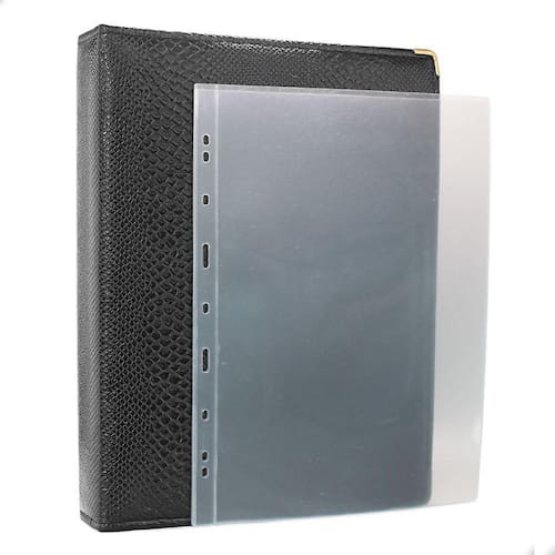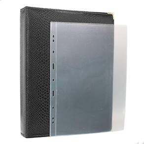 Álbum Fichário 30 Folhas para Cédulas 1 Espaço 32x24 Ziper Cobra GG, é um kit de fichário que acompanha folhas para cédulas em acetato tamanho 32x24cm, a transparência da folha é alta e cristalina, de forma que é possível ver sua cédula sem interferências, e de ambos os lados: frente e verso, dessa forma é possível apreciar sua coleção da melhor forma. Esse kit de folhas é feito em um material resistente sendo o principal organizador de cédulas colecionáveis para colecionador.