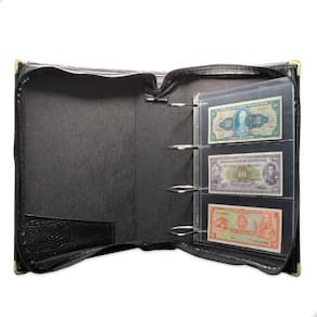 O Álbum Fichário 30 Folhas para Cédulas 3 Espaços 28x21 Cobra Fosco XL, é um kit de fichário que acompanha folhas para cédulas em acetato tamanho 28x21cm, a transparência da folha é alta e cristalina, de forma que é possível ver sua cédula sem interferências, e de ambos os lados: frente e verso, dessa forma é possível apreciar sua coleção da melhor forma. Esse kit de folhas é feito em um material resistente sendo o principal organizador de cédulas colecionáveis para colecionador.