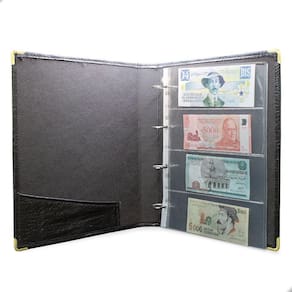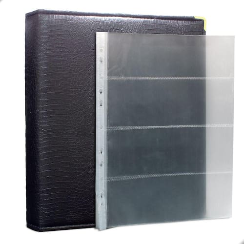 Álbum Fichário 30 Folhas PP para Cédulas 4 Espaços 32x24 Cobra Fosco GF, é um kit de fichário que acompanha Folhas PP. Seu acabamento é transparente, podendo visualizar as cédulas frente e verso. Essa folha é ideal para você criar aquele mostruário que sempre desejou com sua coleção de cédulas antigas, nacionais ou estrangeras e finalmente poder mostrar sua coleção toda organizada para sua família e amigos.
