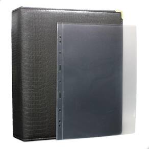 Álbum Fichário 40 Folhas para Cédulas 1 Espaço 32x24 Cobra Fosco G, é um kit de fichário que acompanha folhas para cédulas em acetato tamanho 32x24cm, a transparência da folha é alta e cristalina, de forma que é possível ver sua cédula sem interferências, e de ambos os lados: frente e verso, dessa forma é possível apreciar sua coleção da melhor forma. Esse kit de folhas é feito em um material resistente sendo o principal organizador de cédulas colecionáveis para colecionador.