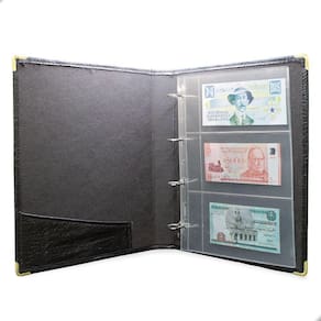 Álbum Fichário 40 Folhas para Cédulas 3 Espaços com Bolso 32x24 Cobra Fosco GF, é um kit de fichário que acompanha folhas para cédulas em acetato tamanho 32x24cm, a transparência da folha é alta e cristalina, de forma que é possível ver sua cédula sem interferências, e de ambos os lados: frente e verso, dessa forma é possível apreciar sua coleção da melhor forma. Esse kit de folhas é feito em um material resistente sendo o principal organizador de cédulas colecionáveis para colecionador.