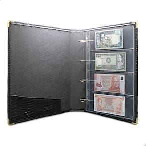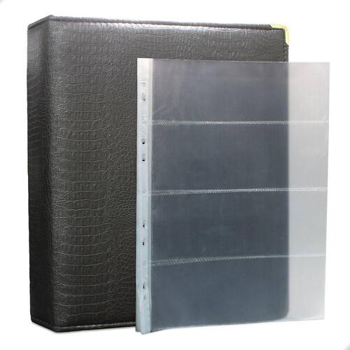 Álbum Fichário 40 Folhas para Cédulas 4 Espaços 32x24 Cobra Fosco G, é um kit de fichário que acompanha folhas para cédulas em acetato tamanho 32x24cm, a transparência da folha é alta e cristalina, de forma que é possível ver sua cédula sem interferências, e de ambos os lados: frente e verso, dessa forma é possível apreciar sua coleção da melhor forma. Esse kit de folhas é feito em um material resistente sendo o principal organizador de cédulas colecionáveis para colecionador.