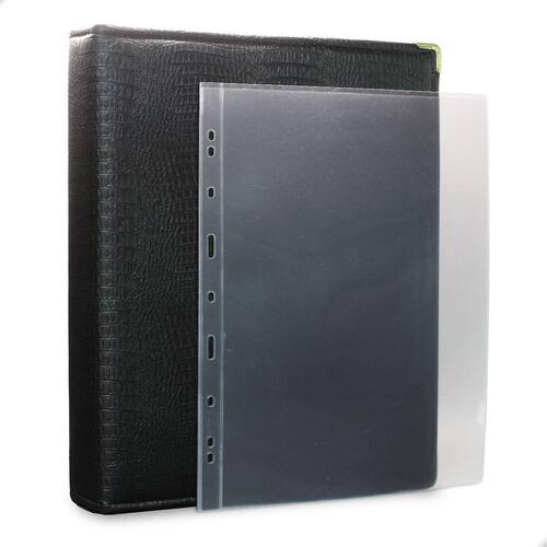 Álbum Fichário 40 Folhas para Cédulas 1 Espaço 32x24 Ziper Cobra Fosco GG, é um kit de fichário que acompanha folhas para cédulas em acetato tamanho 32x24cm, a transparência da folha é alta e cristalina, de forma que é possível ver sua cédula sem interferências, e de ambos os lados: frente e verso, dessa forma é possível apreciar sua coleção da melhor forma. Esse kit de folhas é feito em um material resistente sendo o principal organizador de cédulas colecionáveis para colecionador.