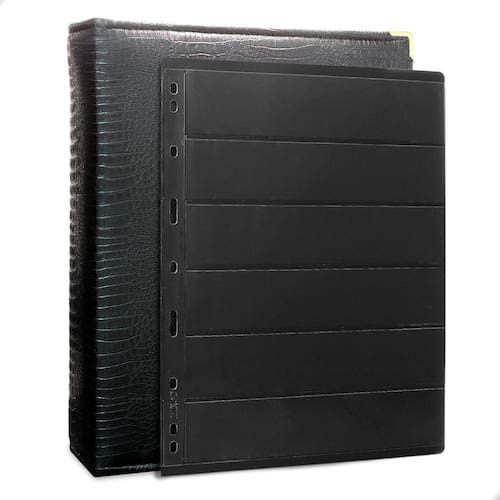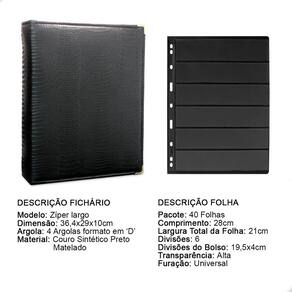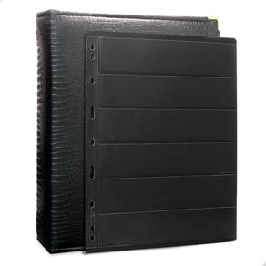O Álbum Fichário 40 Folhas para Selos 6 Espaços 28x21 Cobra Fosco XL, é um kit de fichário que acompanha folhas para selos em acetato preto tamanho 28x21cm, a transparência da folha é alta e cristalina, de forma que é possível ver sua cédula sem interferências, dessa forma é possível apreciar sua coleção da melhor forma. Esse kit de folhas é feito em um material resistente sendo o principal organizador de cédulas colecionáveis para colecionador.