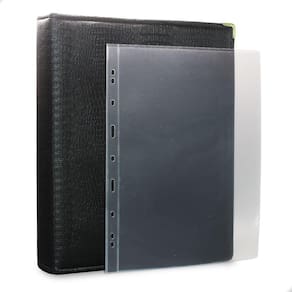 Álbum Fichário 50 Folhas para Cédulas 1 Espaço 32x24 Ziper Cobra Fosco GG, é um kit de fichário que acompanha folhas para cédulas em acetato tamanho 32x24cm, a transparência da folha é alta e cristalina, de forma que é possível ver sua cédula sem interferências, e de ambos os lados: frente e verso, dessa forma é possível apreciar sua coleção da melhor forma. Esse kit de folhas é feito em um material resistente sendo o principal organizador de cédulas colecionáveis para colecionador.
