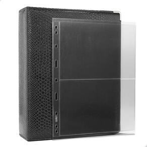 O Álbum Fichário 50 Folhas para Cédulas 2 Espaços 28x21 Cobra XL, é um kit de fichário que acompanha folhas para cédulas em acetato tamanho 28x21cm, a transparência da folha é alta e cristalina, de forma que é possível ver sua cédula sem interferências, e de ambos os lados: frente e verso, dessa forma é possível apreciar sua coleção da melhor forma. Esse kit de folhas é feito em um material resistente sendo o principal organizador de cédulas colecionáveis para colecionador.
