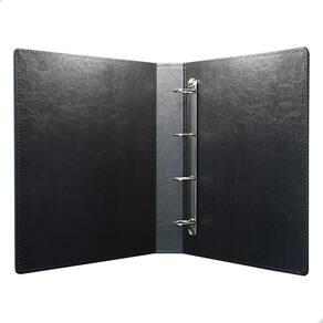 É confeccionado com 4 argolas em formato em 'D' em aço inoxidável reforçado permitindo encaixe de folha de inserção de até 32x24cm.
