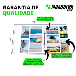 diversificada assim como suas recordações. Para aquela viagem inesquecível em outro país, o passeio pelo interior ou mesmo aquela visita memorável em algum lugar histórico, os álbuns de fotos da linha mega tem um formato maior e grande capacidade de armazenar fotos. Capa dura com revestimento vinílico ou impressa com laminação fosca. Álbum ampliável, encadernação com ferragem, aceita refil. Folhas em plástico texturizado branco. Para 500 fotos 10x15