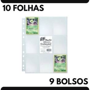 - 10 Folhas Plásticas com 9 Bolsos cada, marca YES, ideais para armazenar e organizar seus cards Pokémon.
