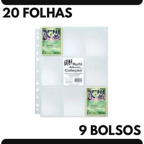 - 20 Folhas Plásticas com 9 Bolsos cada, marca YES, ideais para armazenar e organizar seus cards Pokémon.