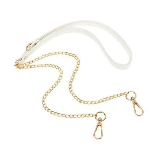 Alça de Bolsa com Corrente e Mosquetão Dourado e Branco 120cm Alça de Bolsa com Corrente e Mosquetão Dourado e Branco 120cm A alça de bolsa com corrente é perfeita para realizar a substituição das alças de bolsa ou para agregar valor ao seu artesanato.Nossa alça possui uma alta durabilidade e dois mosquetões para aplicação em argolas ou fechos. Tamanhos: Tamanho Geral: 120cmTamanho da alça: 30,5cm x 2,2cm espessura: 3mm Tamanho da corrente: 46cm x 0,9cm espessura: 2mm Tamanho da argola: 2,2cm x 3,2cm espessura: 3mm Tamanho do Mosquetão: 13mm x 40mm interno: 17mm/ espessura: 4mm Ficha Técnica - Composição: 60% Aluminio / 35% Couro Ecológico / 5% Liga de metal - Quantidade: 1 unidade Marca: Lns