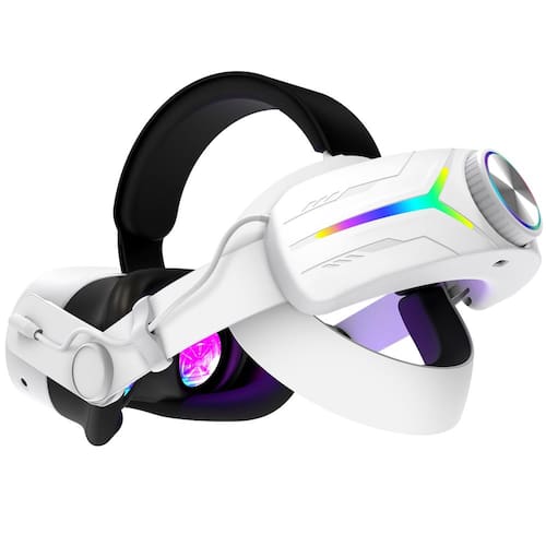 QWOS Alça de cabeça de bateria confortável RGB 12000 mAh compatível com fone de ouvido Meta Quest 3S - ? Aumente o tempo de reprodução: melhore sua experiência de realidade virtual e compatível com o Meta Quest 3S. A alça de cabeça de bateria confortável da QWOS usa baterias de nível industrial; as baterias integradas de 12000 mAh fornecem 7 a 8 horas adicionais de reprodução, dependendo do uso. - ? Conforto luxuoso: possui almofadas macias e grossas na parte superior e nas costas; bateria perfeitamente contrapesada; o design ergonômico garante conforto incomparável durante os jogos. - ? Segurança em primeiro lugar: equipado com uma bateria integrada certificada de 12000 mAh; tiras laterais duráveis e ecológicas podem dobrar até dez mil vezes; atendimento ao cliente atencioso garante que você se sinta seguro durante o jogo. - ? Suporte ampliado – suporta uma ampla variedade de tamanhos de cabeça; de dezessete pontos sete a vinte e nove pontos cinco polegadas; suporte de cabeça ampliado envolve sua cabeça; projetado para uso confortável a longo prazo - ? Almofada de espuma viscoelástica – A alça superior alargada e a almofada de cabeça espessa melhoram o conforto; reduz efetivamente a pressão durante o uso; a superfície de couro PU macio permite uma limpeza fácil. - ? Dicas: observe que esta alça de cabeça de bateria de 12000 mAh é compatível apenas com META QUEST 3S