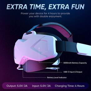 Alça de cabeça com bateria integrada de 5000mAh para Oculus Quest 2, proporcionando até 4 horas adicionais de jogo. Melhora o suporte, conforto e equilíbrio de peso.Vendido e entregue por NOCNOC ASÍA