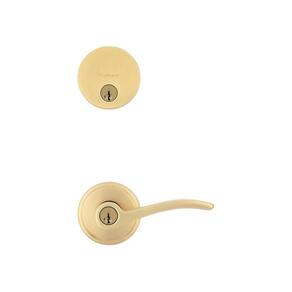 Conjunto combinado de maçaneta e fechadura frontal Kwikset Sedona, latão acetinado, resistente a picadas SmartKey Rekey Deadbolt Security, com proteção Microban