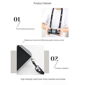 Especificações: Material: nylon + aço inoxidável Comprimento: 76-140 cm ajustável Modelos aplicáveis: para controle remoto DJI RC PRO Conteúdo da embalagem: 1 alça 2 parafusos. 2 juntas - ? O cordão RC é feito de material de nylon de alta qualidade, leve e respirável, confortável de usar e durável para uso intenso. - ? Você pode relaxar suas mãos e evitar derrubar o controle remoto RC PRO. Com a alça de transporte, é mais conveniente carregá-la para qualquer lugar. - ? O comprimento da alça de ombro pode ser ajustado de 76 cm a 140 cm, adequado para todas as pessoas. - ? Projetado com anel tipo C, você pode dobrá-lo ao armazenar para evitar desmontagem frequente, o que pode encurtar a vida útil do anel de gancho. - ? A alça de cordão é universal para DJI RC/ DI RC2/DJI RC PRO Controller, compatível com drones DJI Mini 4 pro/Air 3/Air 2s.
