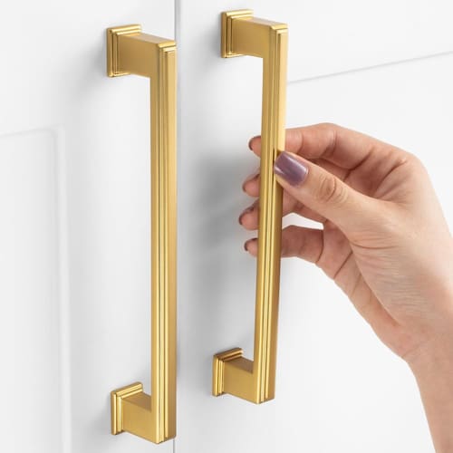 [Medidas] Centros dos furos: 6-1/4 polegadas (160 mm); Comprimento total: 7-1/16 polegadas (179 mm); Largura: 11/16 polegadas (17 mm); Altura: 1-3/16 polegadas (30 mm). [Fácil instalação] Cada puxador vem com dois conjuntos de parafusos que se encaixam em portas de armário comuns e gavetas para facilitar a instalação. [Design exclusivo] Escolhido para uma sensação tátil e acabamento superior, esta alça oferece uma aderência suave e confortável, bem como atração visual impactante. [Ampla compatibilidade] Esta alça é adequada para várias decorações e dará à sua casa um toque muito elegante, moderno e bonito. [Aviso antes da compra] Antes de fazer um pedido, meça os centros dos orifícios da tração atual. Verifique se o comprimento total deste puxador é adequado para o tamanho dos seus armários. - Material e cor: Feito de liga de zinco em ouro escovado, durável e à prova de ferrugem. - Tamanhos e parafusos: Centros dos furos: 6-1/10.2 cm, comprimento total: 7-1/40.6 cm. 2 tamanhos de parafusos (2,5 cm e 1-1/5.1 cm) anexados para caber na porta do armário e gaveta. - Embalagem segura: cada puxador é embalado com cuidado para evitar arranhões ou danos; os clientes receberão os produtos em boas condições. - Serviço pós-venda sem preocupações: Qualquer dúvida ou problema com os produtos, com nossa equipe de pós-venda para suporte e serviço completo. - Amplas aplicações: Elegante e funcional, decoração perfeita para armário de cozinha, gaveta de mesa, cômoda, banheiro, porta de móveis, penteadeira, armário, quarto, guarda-roupa, armário, armário, baú, estante, cabana, aparador, etc.